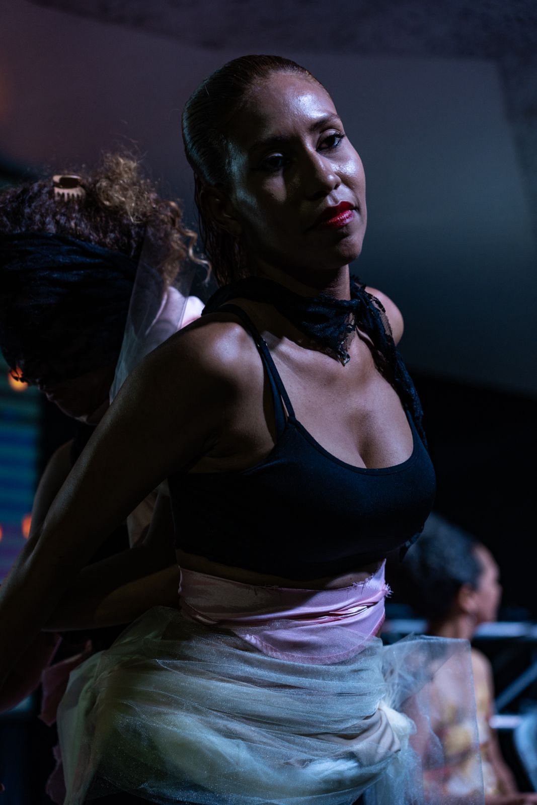 «ELLAS» es una acción que se realizó en el marco de la FILSAI, feria insular del libro del archipiélago de San Andrés, providencia y Santa Catalina. Esta feria fue realizada bajo el concepto “Bitout Baada” que significa en Creole (idioma de las islas): sin fronteras. Trabajé la idea de eliminar los límites que separan un cuerpo de otro con este acto, utilizando textiles que uso en mis pinturas constantemente, una manera de poner la pintura en el cuerpo y de suprimir la distancia entre uno y otro, buscando en esa acción el logro de una sola forma.
